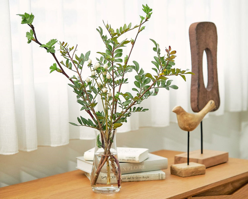 テーブルやカウンターの上にぴったりのサイズ。原則、2種類の枝ものを組み合わせてインテリアを彩ります。