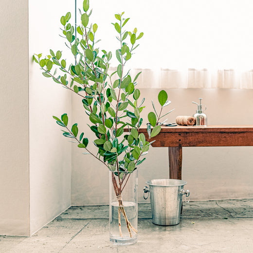 床置きはもちろんいっぱい、卓上置きで視界の葉や花を楽しむのもおすすめです。ふとした時に視界に入った枝が気持ちを穏やかにしてくれます。