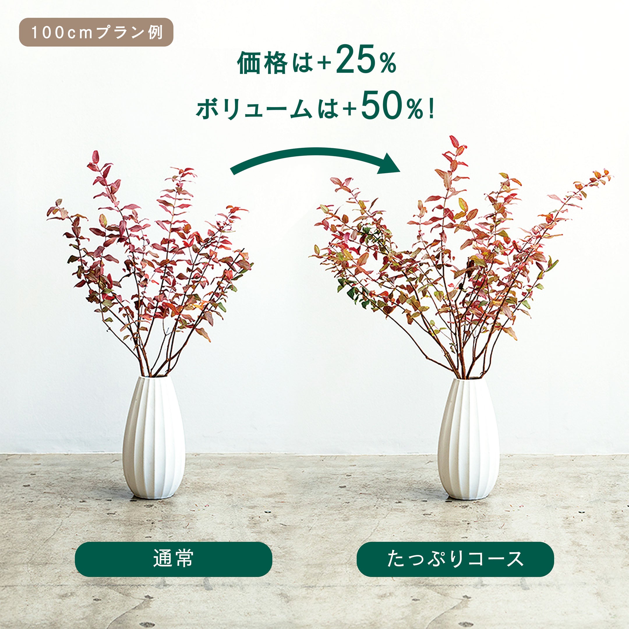 『大好きな枝ものをもっと飾りたい!』という声にお応えして、「たっぷり1.5倍コース」が誕生。