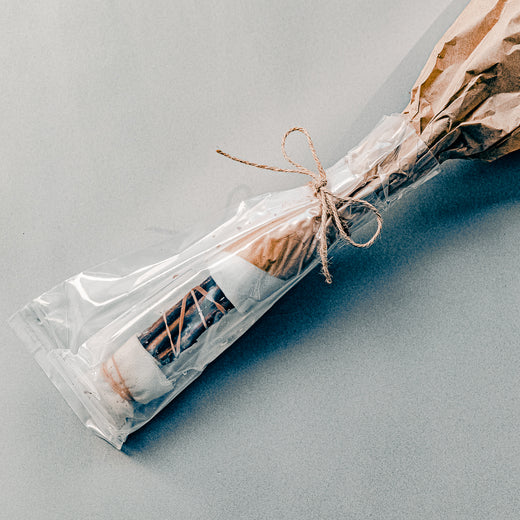 配送中もデリケートな枝ものの鮮度を守るため、抗菌剤入りの水が入った水袋をつけてお届けします。