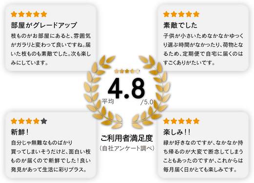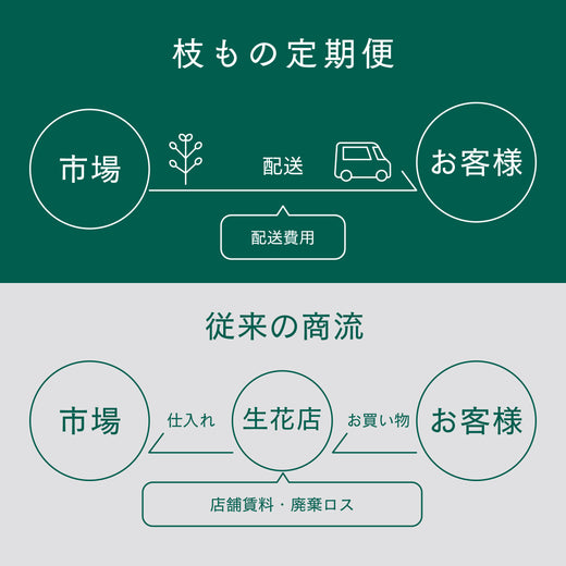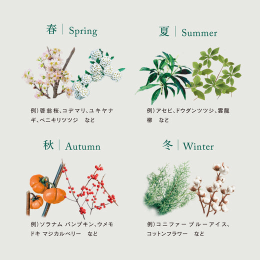 枝ものの仕入れは天候や気温などによって左右されるため、その時々の状況でプロがおすすめするものをお届けします。