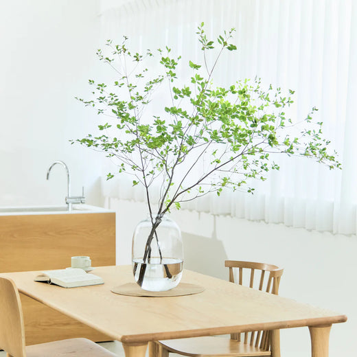床置きはもちろんいっぱい、卓上置きで視界の葉や花を楽しむのもおすすめです。ふとした時に視界に入った枝が気持ちを穏やかにしてくれます。